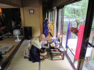 秋雨前線の影響で、当日も予報では雨マーク。今回ばかりは雨を覚悟致しましたが、朝からの曇り空は法要が終わると共に晴れ間を覗かせ、職衆寺院様方、檀信徒様方の祈りがご先祖さまや有縁無縁の霊に至るまで行き届いたことを現すかのようでした。