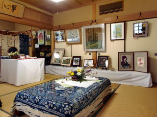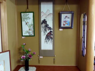 境内にはロウソクの明かりを灯し、会場には趣味の作品や書道作品を展示。開場前から多くの方々が来場され、ゆっくりと作品を見入っていました。