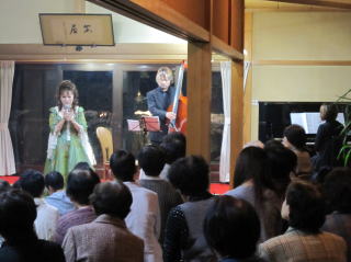 その後、ジャズとクラッシックを融合した「ジャズらしっく」の皆様をお迎えし、コンサートをしていただきました。ベースとピアノでジャズ独特のリズムを刻み、ソプラノ歌手の伸びやかで迫力のある歌声を間近で聞くことができ、普段なかなか触れる機会のない音楽を楽しむことができました。
