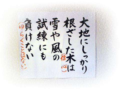 新しい年が始りました。皆さんの心に信心の根が深く根ざしますように。 合掌