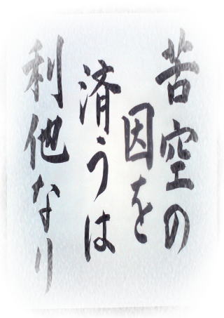 さて、今回の言葉はお大師さまの「御請来目録」に出てきます。他の利益の為に努めていると自分の苦しみの因縁が消えてゆくという意味です。